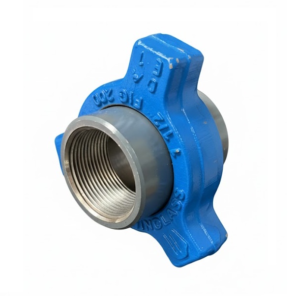 Tri lug blue knock union for connecting Roofer's hot pipe. Does not require a pipe wrench for connection of pipe or tubing. Because of pricing, these are usually saved and installed on tubing that can be purchased without unions, but with the extra heavy nipples that Roofmaster furnishes with its Lite Wall Tubing.