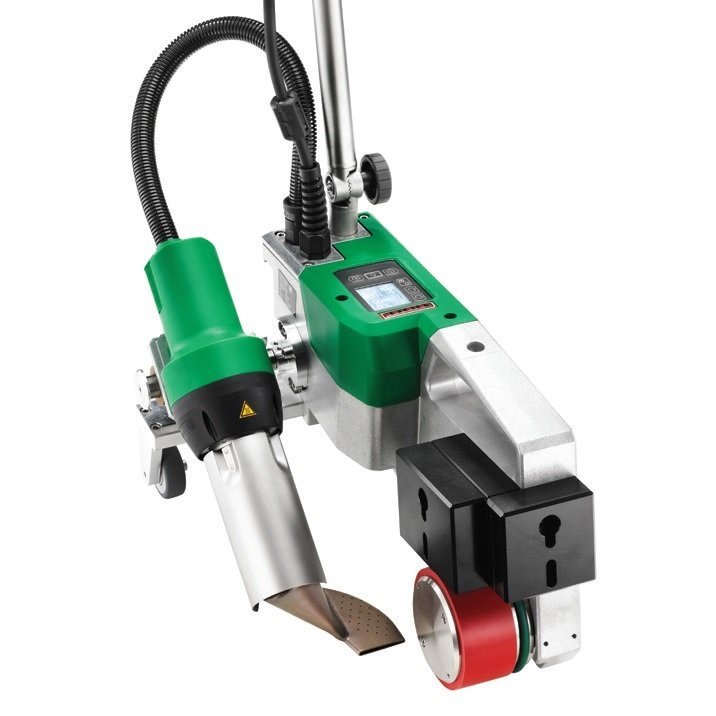 120V LeisterUniRoof 700 Automatic Welder is your flexible partner for welding thermoplastic membranes (for example made of TPO, PVC, EVA, PIB and modified bitumen) on flat roofs up to approx. 500 sqm and slightly inclined roofs (inclination up to 30 degrees). It compliments Leister's globally proven line of automatic roof welding machines. With the Leister Quality System (LQS) the important welding parameters (temperature, air volume and speed) are not only under control, but the welding quality is precisely documented.